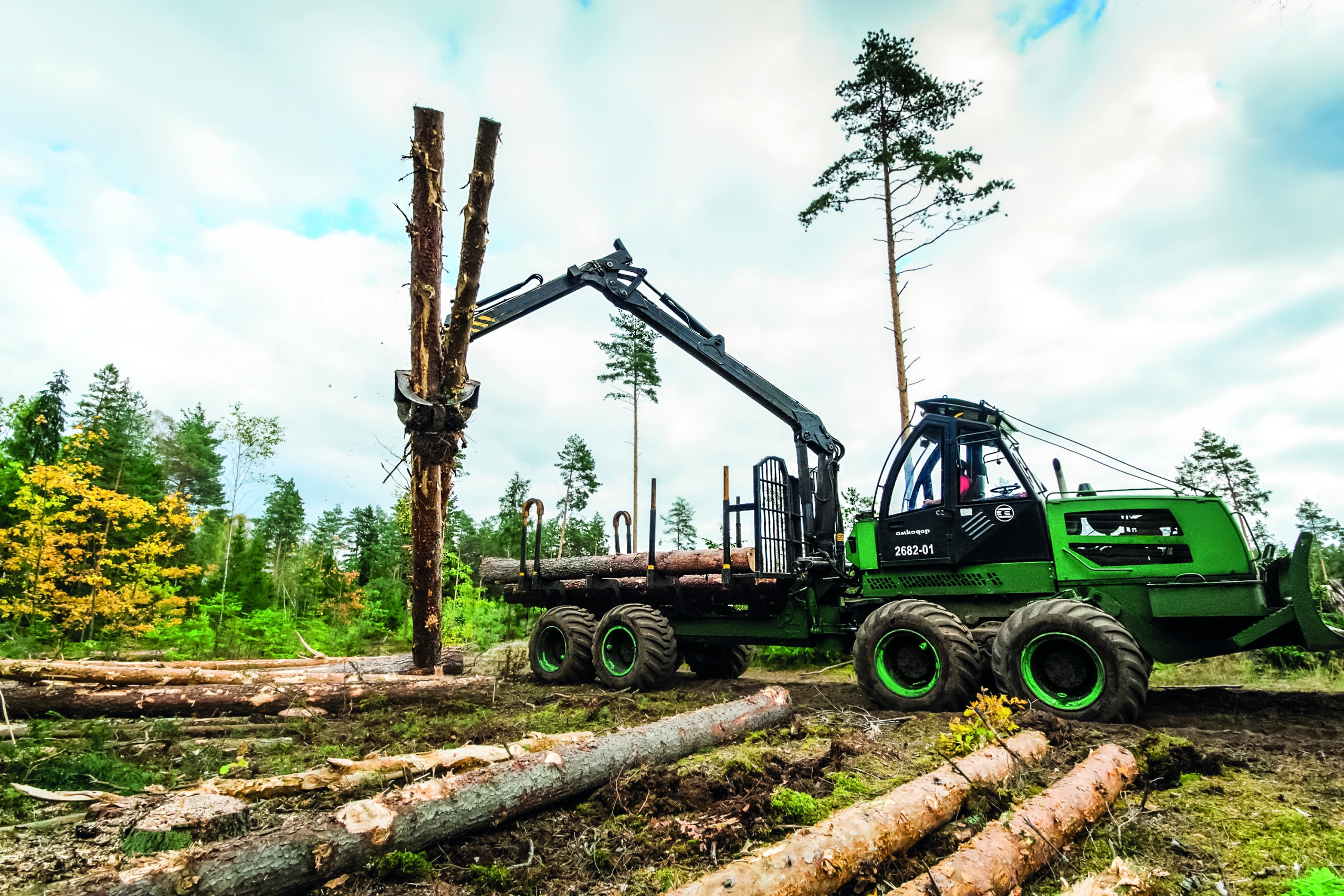 Форвардер АМКОДОР 2682-01 предназначен для сбора, погрузки и транспортировки по территории лесосек, по волокам и лесовозным дорогам сортиментов и других круглых лесоматериалов, а также для выполнения погрузочно-разгрузочных работ, операций сортировки и складирования древесины при проведении рубок главного пользования.