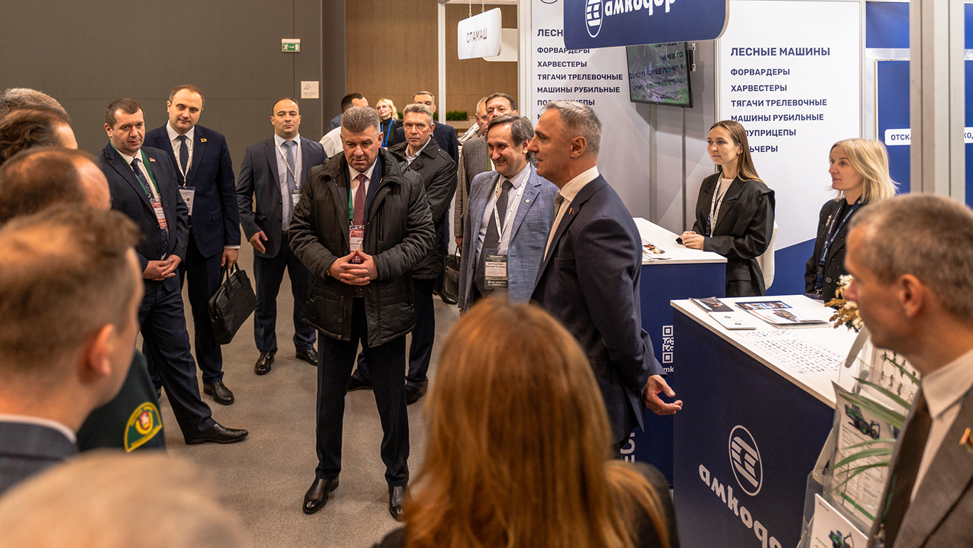 В рамках выставки с экспозицией холдинга «АМКОДОР» ознакомился министр лесного хозяйства Республики Беларусь Александр Кулик и руководители региональных лесохозяйственных ведомств Российской Федерации.