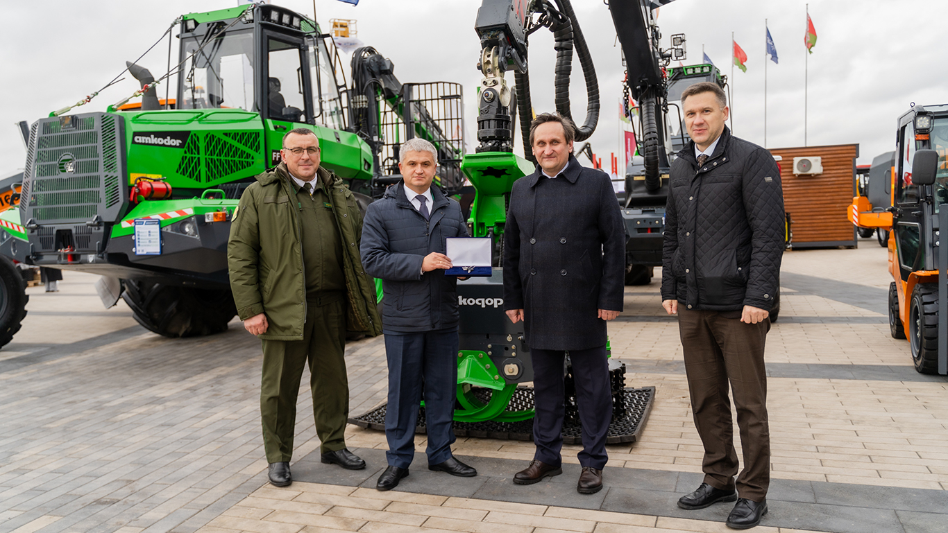 На выставке также состоялась торжественная передача харвестера AMKODOR FH3061 в адрес Новогрудского лесхоза.
