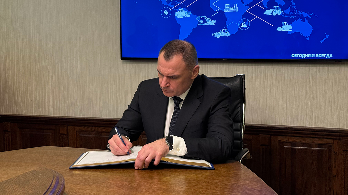 В завершении встречи Глава Республики Марий Эл Юрий Зайцев оставил запись в книге почетных гостей холдинга «АМКОДОР».