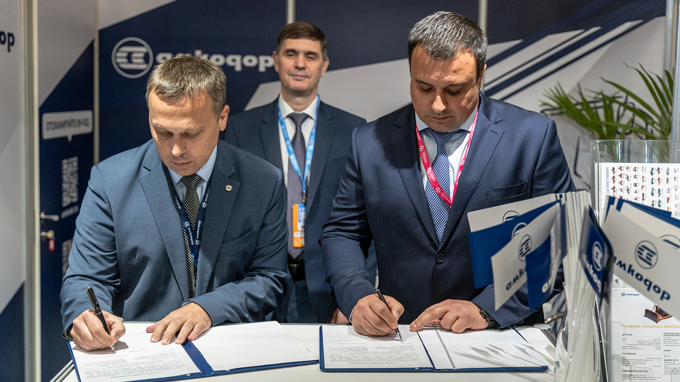 Состоялась встреча с Министром промышленности Ростовской области Андреем Савельевым, в рамках которой было подписано соглашение между ОАО «АМКОДОР» — управляющая компания холдинга» и ООО «Донтранссервис» в сфере организации совместной работы по увеличению объема поставок продукции и дальнейшего сервисного обслуживания техники «АМКОДОР».